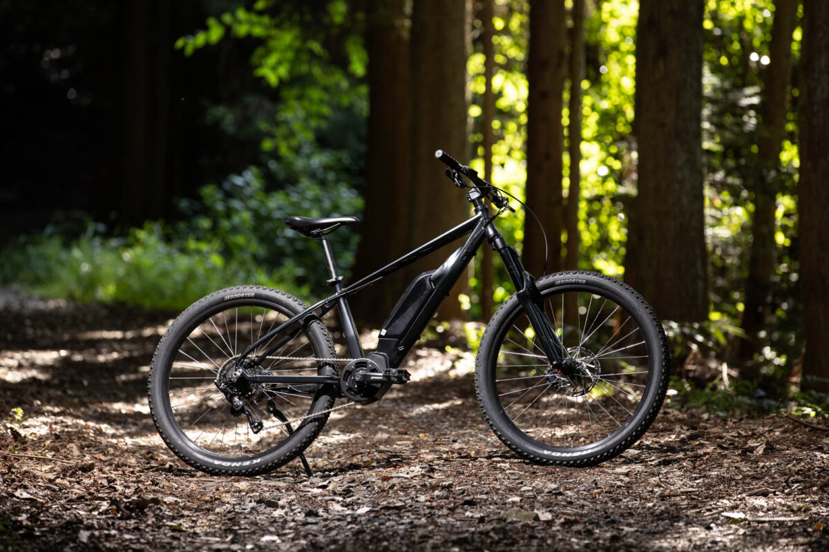 その中でも人気が高いのが山を走れるe-MTB。最近はダートバイク乗りにも、コースの下見用やトレーニング用として導入する人が増えてきています(※JNCCではe-MTBでのコース下見が許可されています)。MTBには、前後にサスペンションを装備した”フルサス”と呼ばれるタイプや、サスペンションはフロントのみとした”ハードテイル”というタイプがありますが、「e-EDIT275」はサスペンションは装備しない”フルリジッド”タイプ。その分、価格は29万8000円に抑えられていて、これからe-Bikeやe-MTBに乗ってみたいというライダーにはうれしい価格設定となっています。