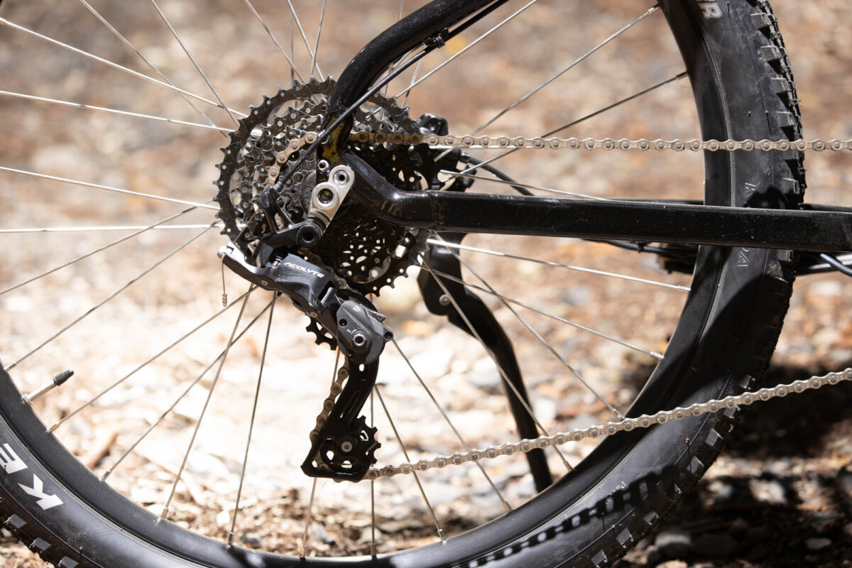変速ギアはリアのみの8速。フロントに変速機構を装備しないのは最近のトレンドです。変速段数は少ないですが、アシストのあるe-MTBなのでこの段数でも不自由を感じることはなさそう。8速用のチェーンは太めなのでアシストの力が加わっても切断されづらいという利点も。