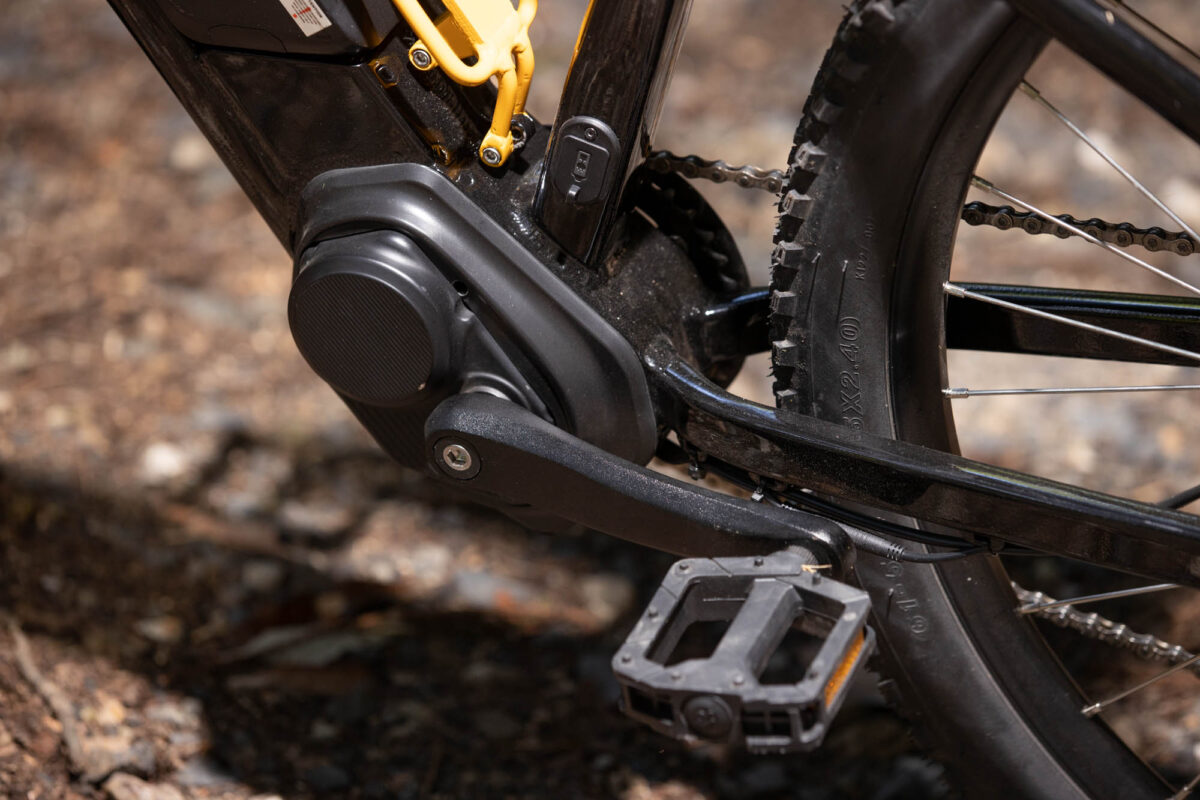 e-MTBの心臓部といえるドライブユニットは、ダートフリークのオリジナル。中央に搭載されるセンターモーターと呼ばれるタイプで、重量バランスも良く、アシストの特性も含めて山道でも扱いやすいのが特徴です。最大トルクは65Nmを発揮し、激坂を登るようなシーンでも十分なアシストを提供してくれます。