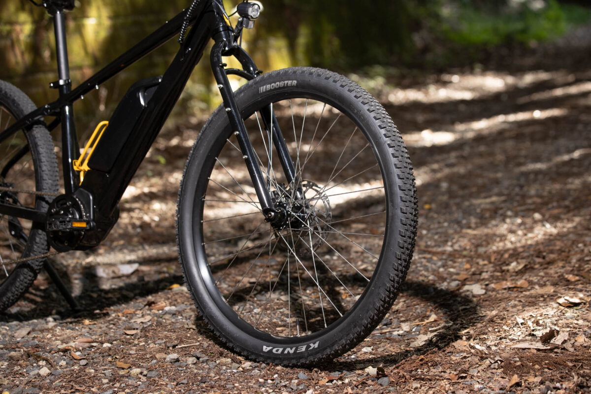 トレイルの下りでは、サスペンションがないことで荒れた路面は手こずるのではないか? と思っていたのですが、実際に下ってみると予想以上に車体が安定していて、割とガレた下り斜面も楽しみながら走ることができました。これは車体のジオメトリーが、下りにも対応できるように設計されているため。すごく簡単にいうと、フロントフォークの角度がやや寝ていて下りの安定感を作り出しているので、サスペンションがなくてもある程度荒れた下りでも楽しむことができます。