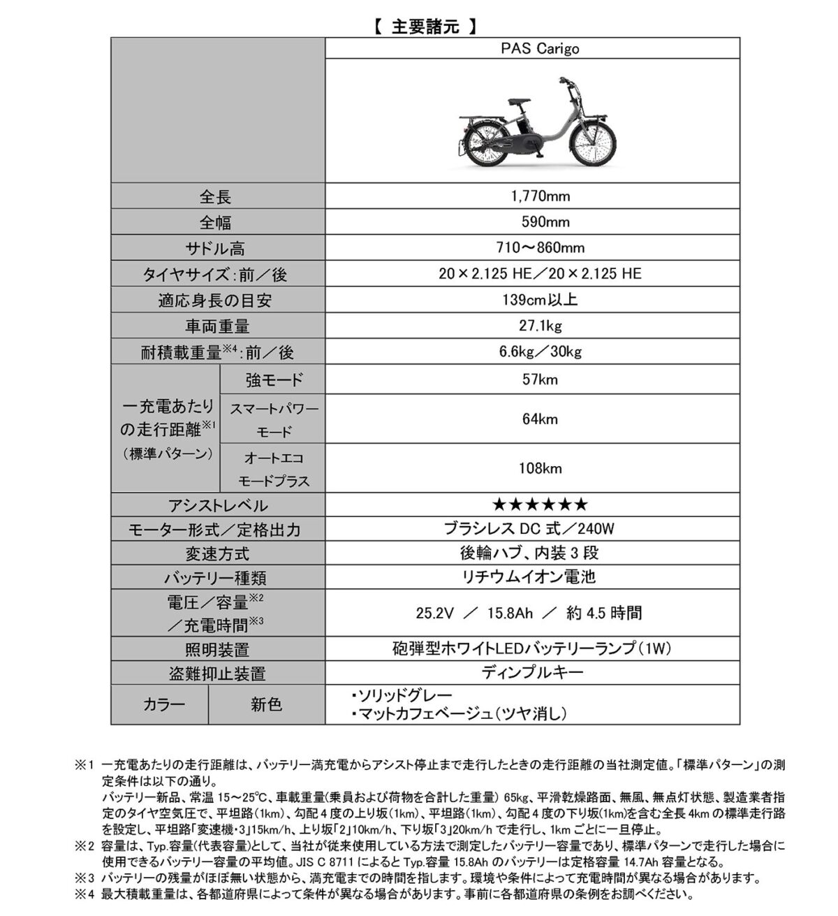 新型電動アシスト自転車「PAS Carigo」を発売~用途に合わせたカスタムで自分だけの1台に仕上げられる小径モデル~