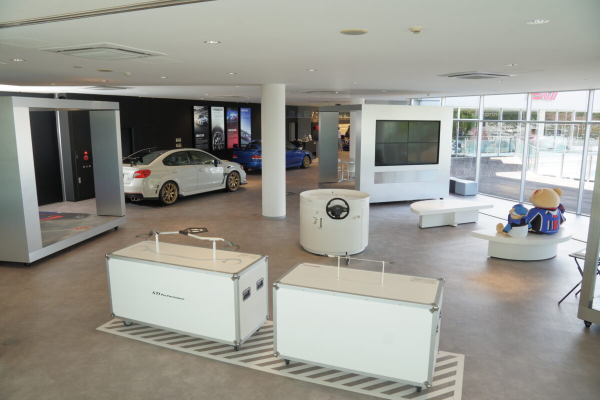 STIギャラリーは2019年にリニューアルされ、ミニカーによる車両年表や、ハンドルとアクセルでボールを動かしSTIモデルのハンドリングを疑似体験できる遊具など、遊びながら学べる展示も充実している。