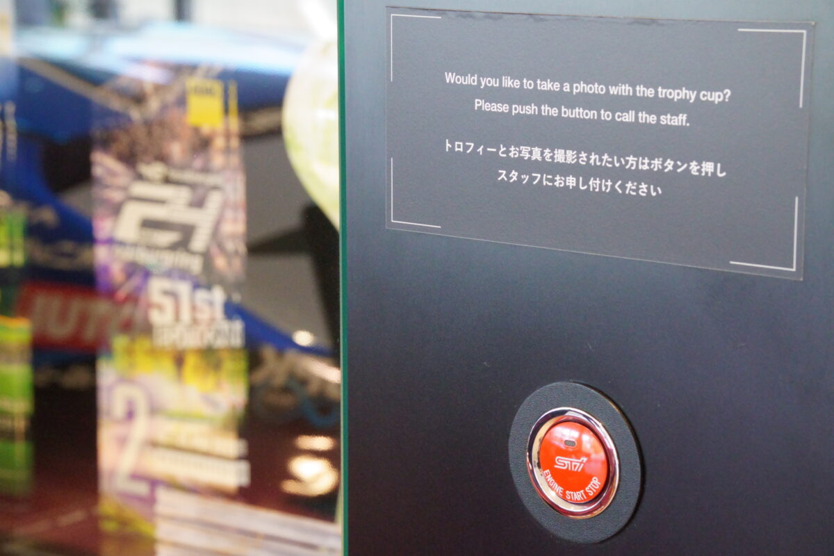 スバルの情熱と技術、そしてファンとの“つながり”を感じることができる場所だ。スバルがレースで獲得したトロフィーも、ただ飾ってあるだけでなく、実際に手に取って写真に収めることもできてしまう。スバルの勝利はファンがあってのもの、という姿勢がこんなところにも現れている。