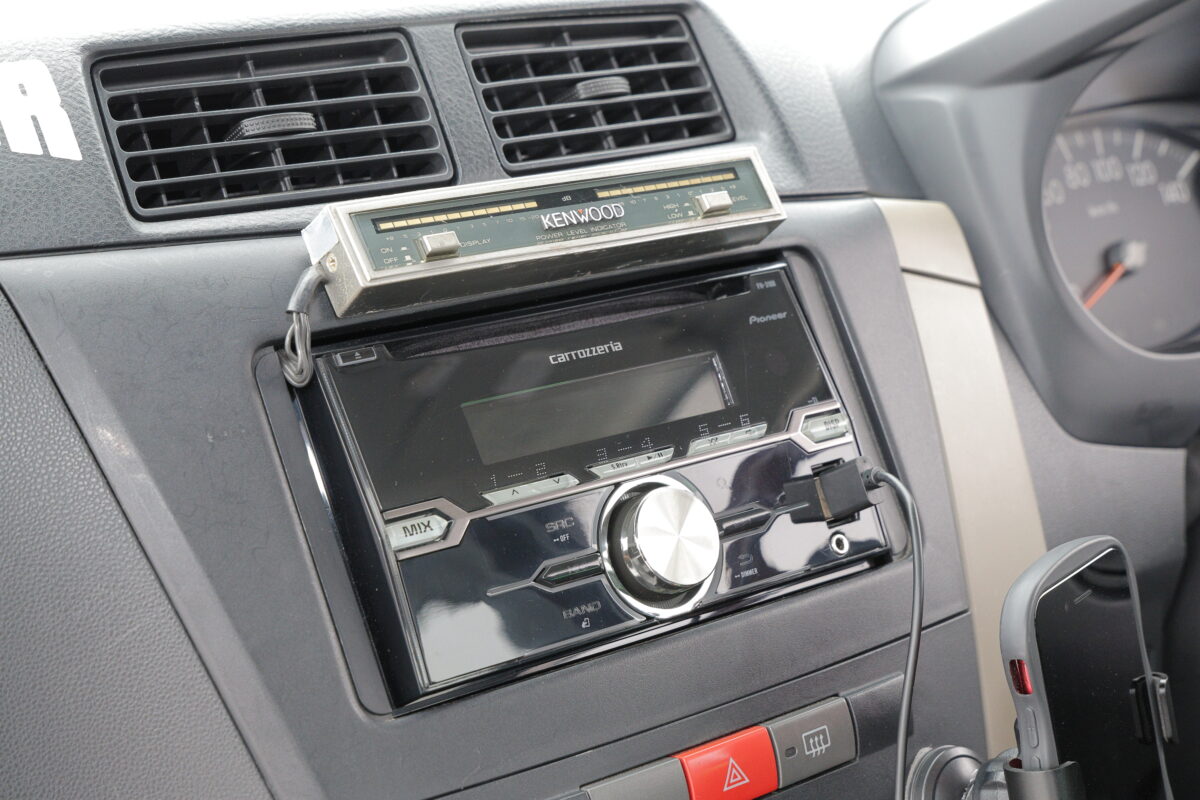 ステアリングやシフトノブ、追加メーターなどに目が行きがちだが、一番のアピールポイントはダッシュボードにあるステッカー。「一緒に走ってる方々から 頂いたステッカー達です」という宝物だ。