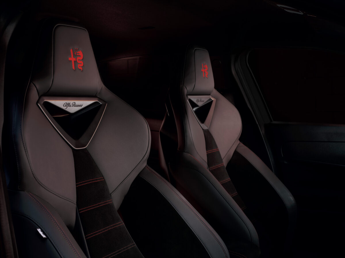 インテリアは、アルファ ロメオならではのドライバーを中心として設計されたコックピットを基盤に、最新技術を採用。すべてを直感的に行えるほどの素早い感知で操作できるようレイアウトされています。インストルメントパネルの計器類はレーシングカーのように奥まった位置に配置し、モータースポーツのDNAを感じさせながらも高い視認性を確保するテレスコープデザインを採用。中央には10.25インチのタッチスクリーンを備え、ホーム画面をドライバーの好みにカスタマイズし、欲しい機能に素早くアクセスすることができます。