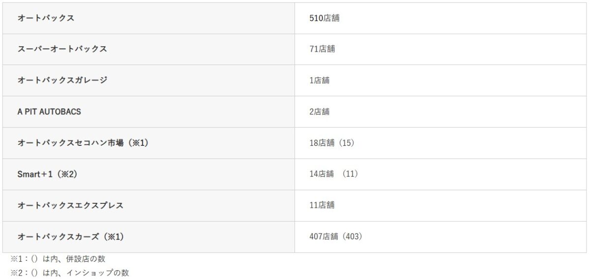 ご参考:オートバックスグループ国内店舗数 計1,034店舗 (2025年5月1日時点)
