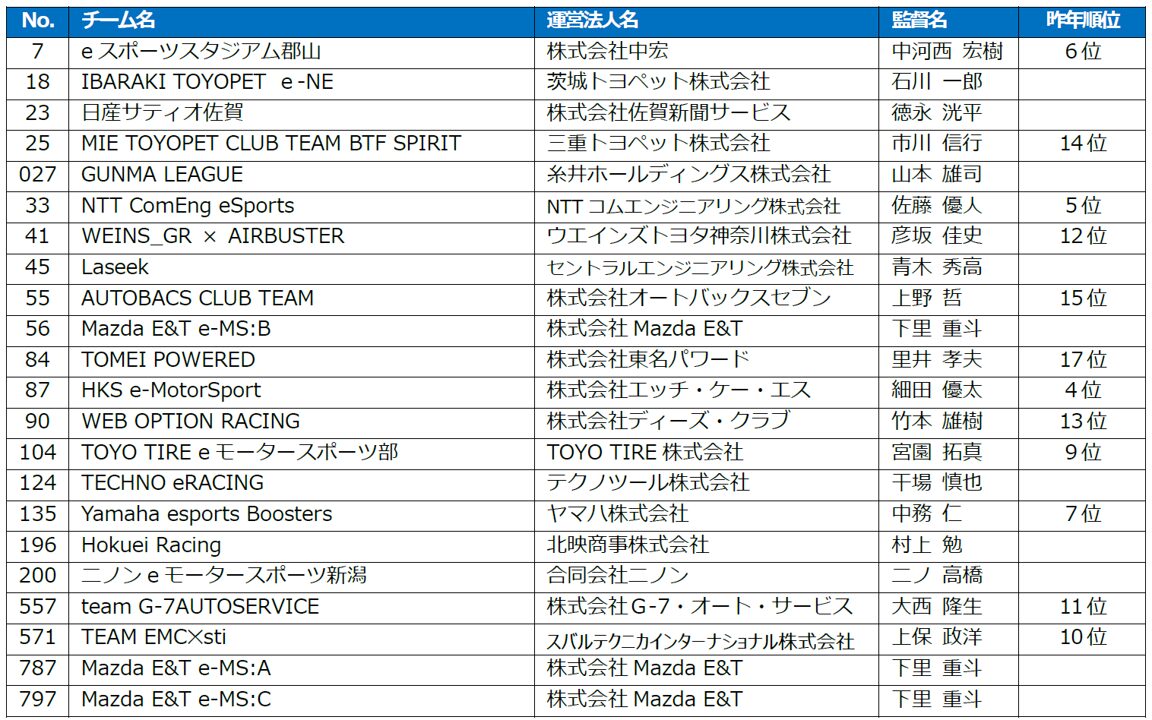 今後もチーム制による国内最大規模のeモータースポーツリーグとして業界の発展に寄与し、性別、年齢、免許の有無に関係なく楽しむことができるeモータースポーツを通じて、クルマ社会の創造と活性化につなげていきたいと考えています。