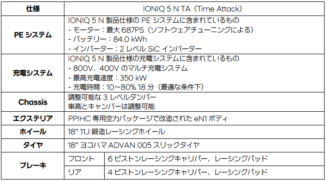 •このレースにて「IONIQ 5 N TA(Time Attack) Spec(アイオニックファイブN TA(タイムアタック)スペック)」 特別装備モデルを披露、「IONIQ 5 N(アイオニックファイブN)」量産モデルとともにパイクスピークでのパイクスピーク記録を狙う