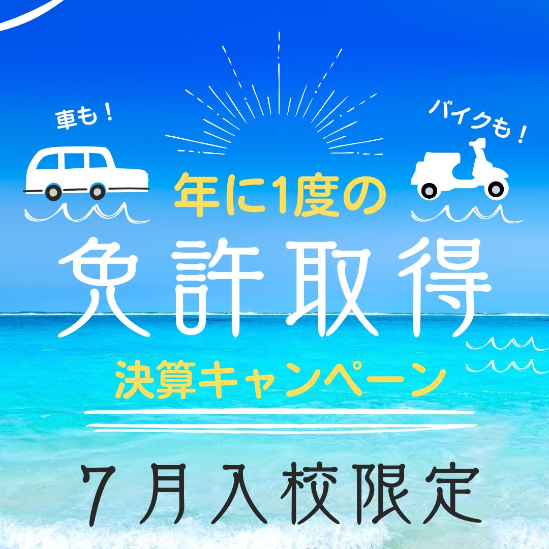 教習開始が8月や9月になってもキャンペーンは適用となりますので、お得に免許取得が可能なこの機会に免許を取ろう!