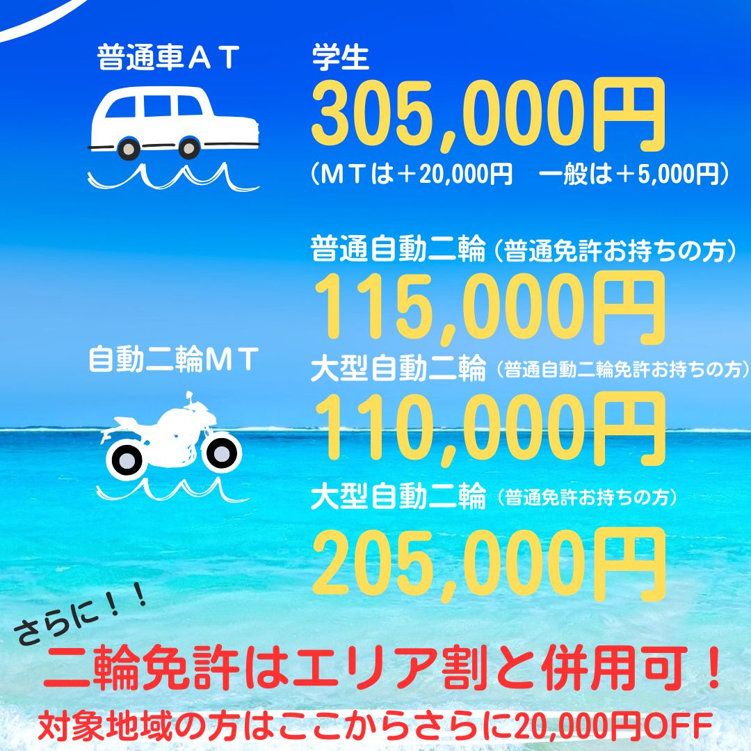普通車免許、普通自動二輪、大型自動二輪で入校の方