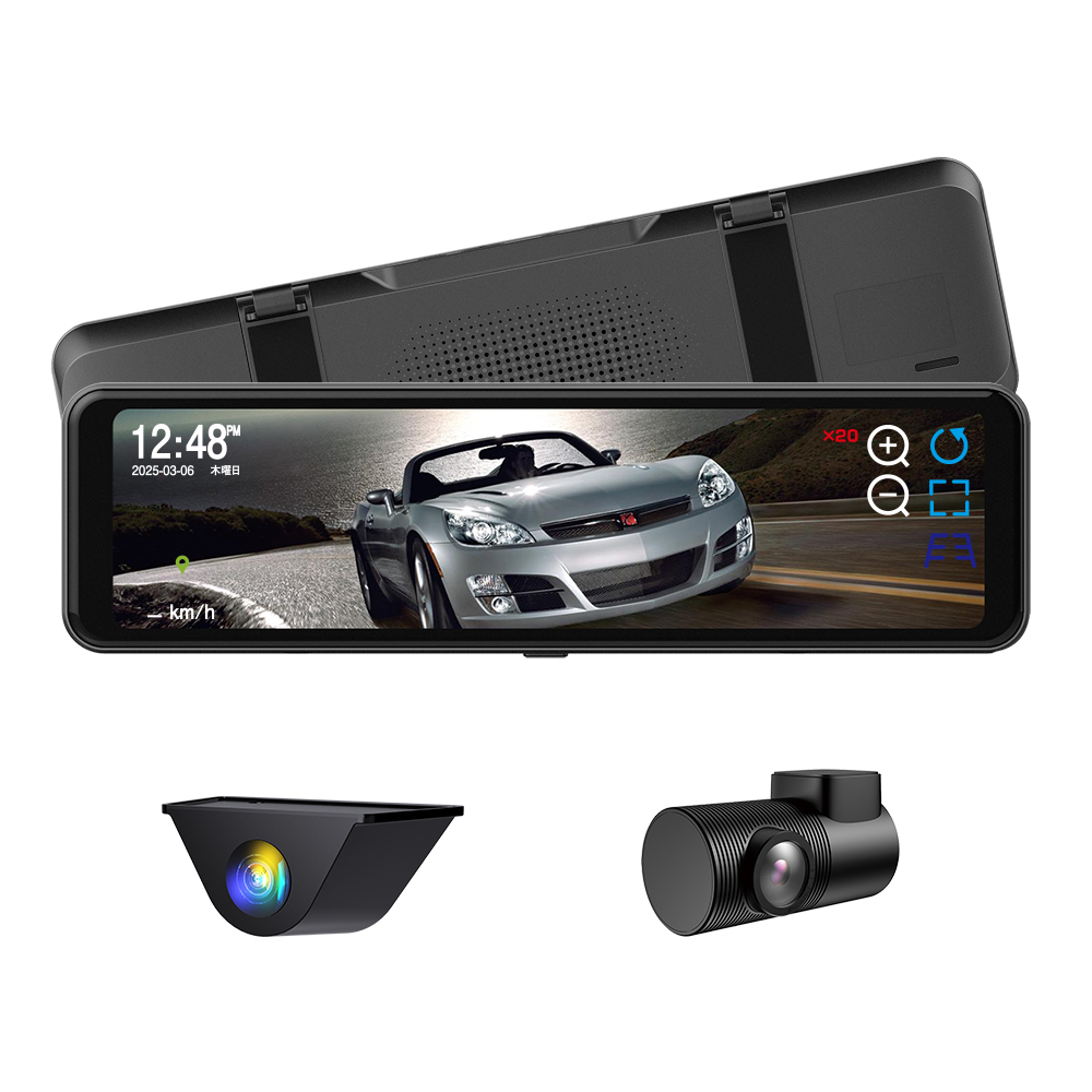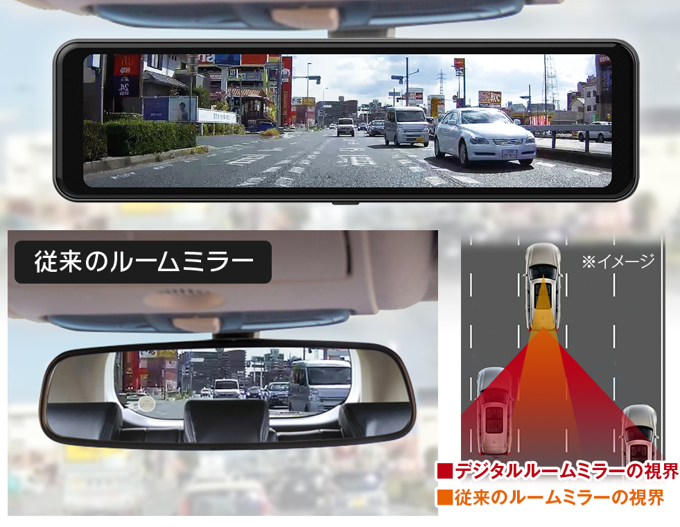 純正ミラーに被せるだけで取り付けられるハイスペック10.88インチデジタルミラー。