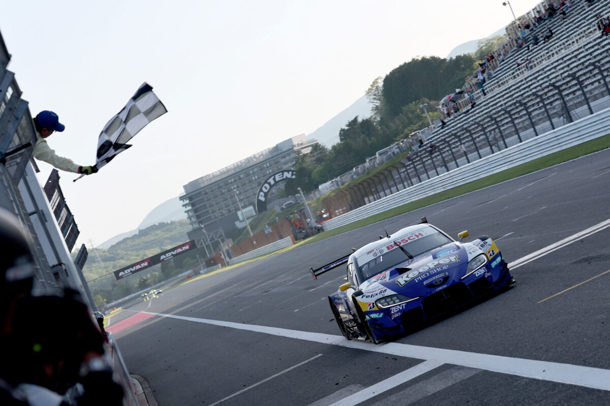 SUPER GTの第2戦が富士スピードウェイで行われ、ポールポジションからスタートした石浦宏明/大湯都史樹組 KeePer CERUMO GR Supra 38号車が独走で優勝。チームに6年ぶりの勝利をもたらしました。2位には開幕戦を制し、最重量のサクセスウェイトを搭載しながらも速さを見せた、坪井翔/山下健太組 au TOM’S GR Supra 1号車が入り、GRスープラは開幕から2戦連続で1-2フィニッシュを飾りました。