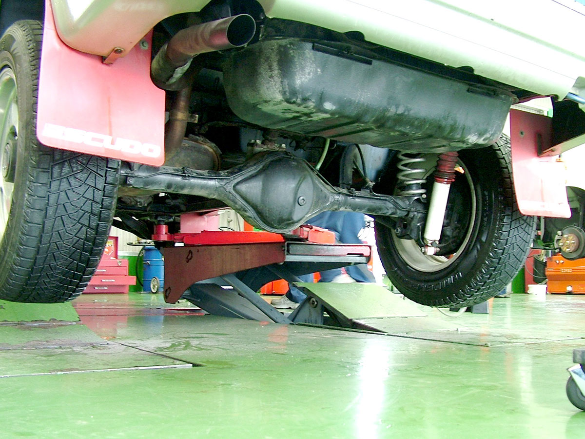 当時のジムニー(JA22)と互角の走破性を探求していた友人の考案による足回りの変更と大径タイヤ装備。リアサスにランチョ、フロントにオールドマン・エミューという変則組み合わせと、アジアクロスカントリーに出場したエスクードのために開発されたアップコイル。