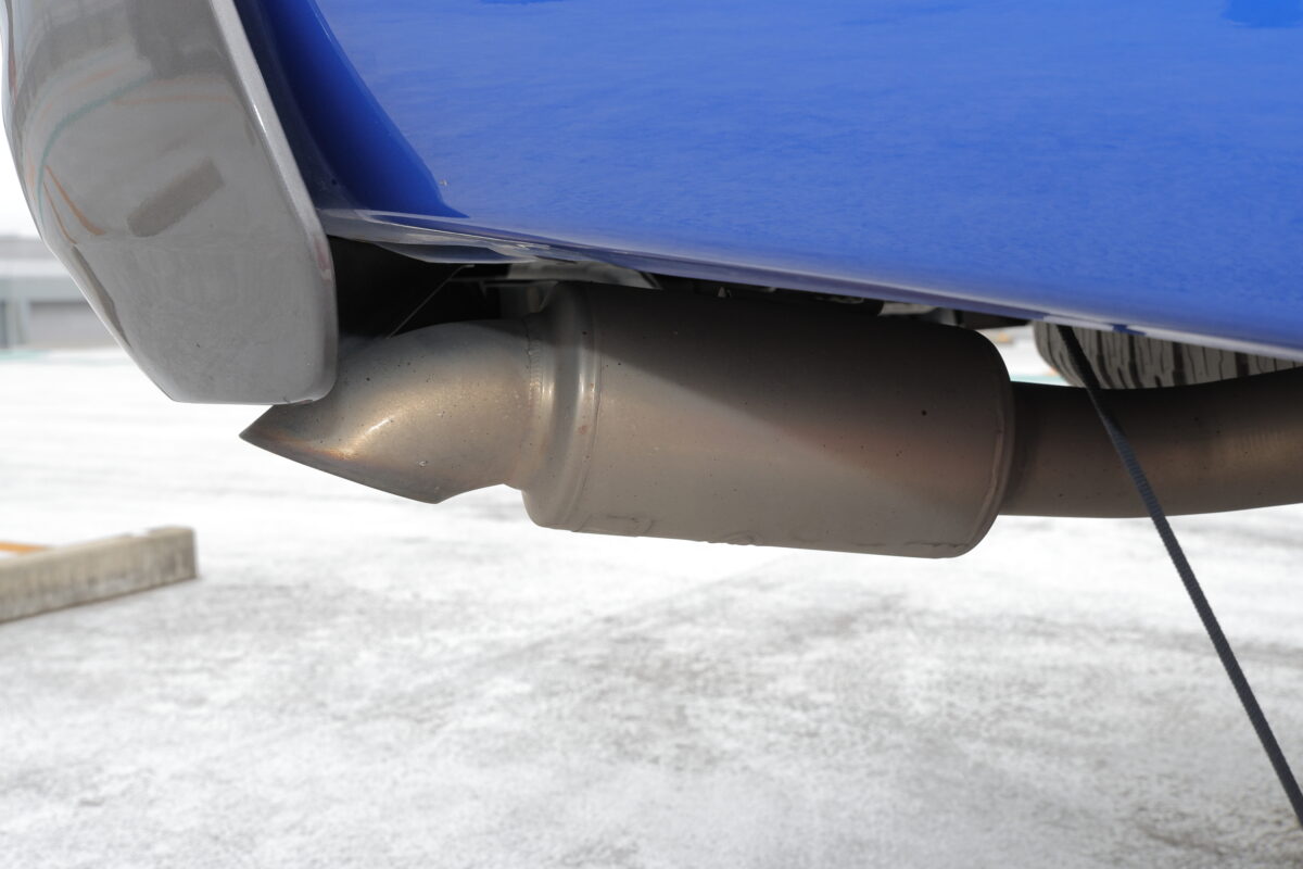 エンジンルームは特にカスタムなし。ただし警告ランプが点灯したこともあり、マフラーを下ろして綺麗に掃除をしたとのこと。愛情をたっぷりかけている。マフラーはガナドール(記憶では)をチョイス。何年か前の群馬パーツショーで購入したものだ。
