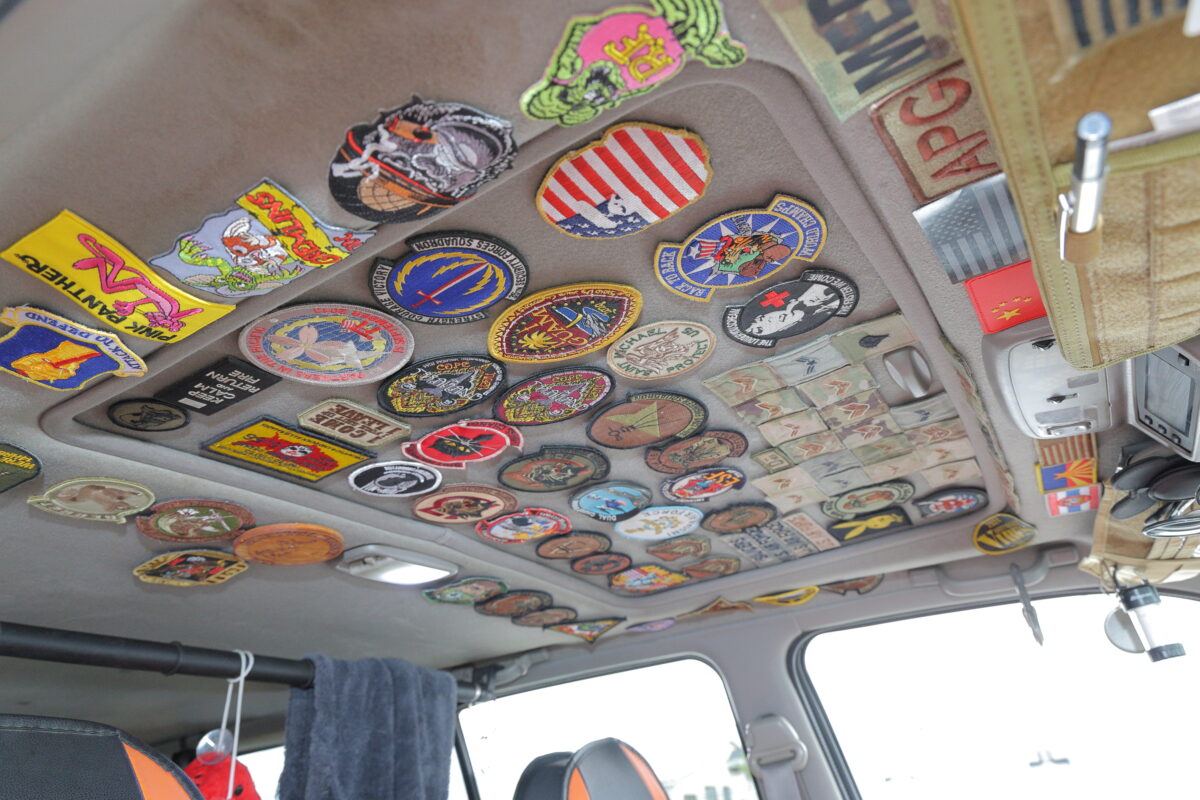 「天井のワッペン。仕事関連の外人さんからもらって集めまったものです」