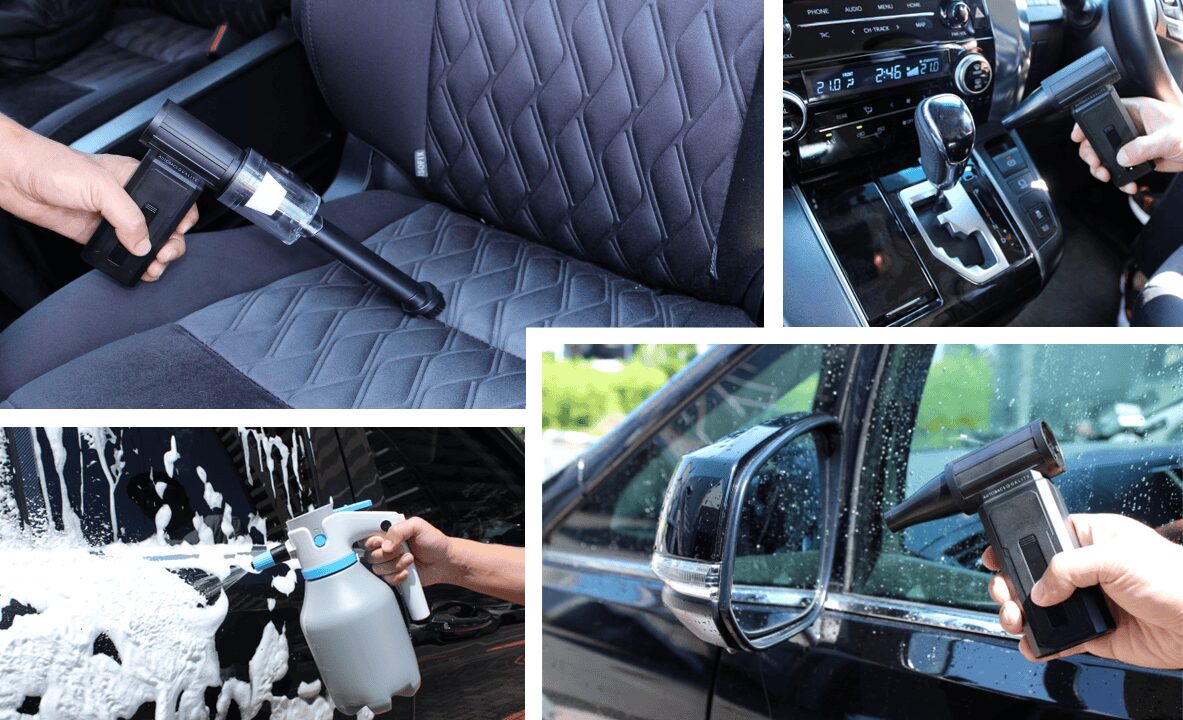 本製品は小型にもかかわらず最大風速約55m/s以上(TURBOモード時)を実現したハイパワー仕様で、隙間に残った水滴を一気に吹き飛ばし、洗車後の仕上げ時間を短縮します。さらに、車内清掃にも活用可能で、掃除機では届きにくい内装の隙間に溜まったホコリを飛ばし、スピーディで効率的な作業をサポートします。