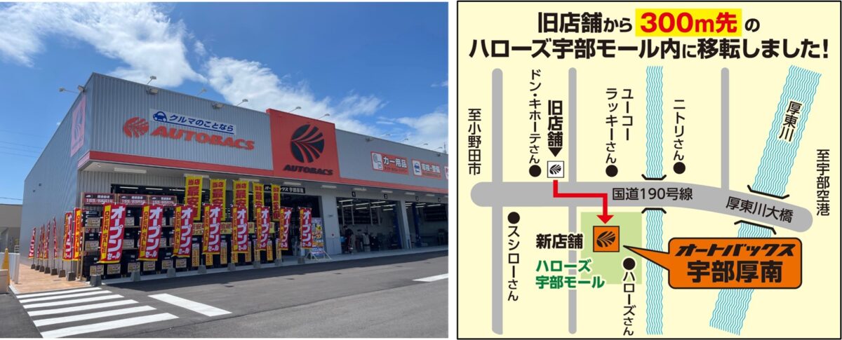 株式会社オートバックスセブンと株式会社オートバックス西日本販売は、「オートバックス宇部厚南」を2025年9月4日に移転オープンした。