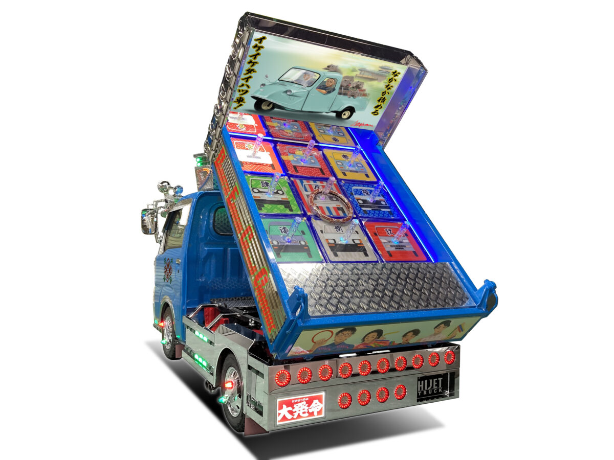 1. 「世代を超えて、人の輪を繋いで笑顔に。暮らしをおもろく、お客様を元気にしたい」との想いを込めた「ハイゼット トラック PTO ダンプ 大発命(ダイハツメイ)」