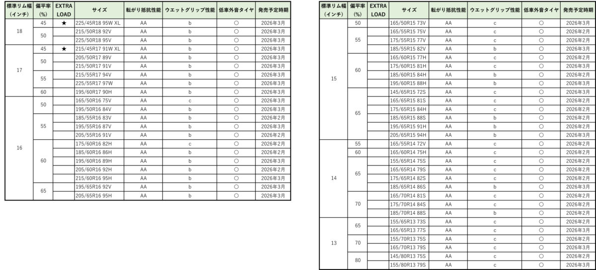 同製品は、従来モデル「EC204」の特長を継承しつつ、新開発ゴムの採用により雨天時の制動性能を約6%向上。全50サイズ中27サイズがウエットグリップ性能“b”を取得するなど、安全性も強化されたモデルとなっている。幅広い車種に対応可能なため、興味のある方は詳細をチェックしてみてはいかがだろうか。