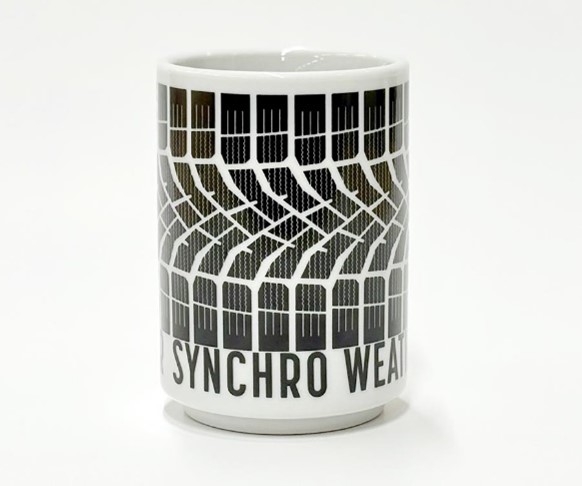 トレッドパターン(タイヤ表面の溝やブロック配置)柄の湯吞オリジナルグッズ「SYNCHRO WEATHER」