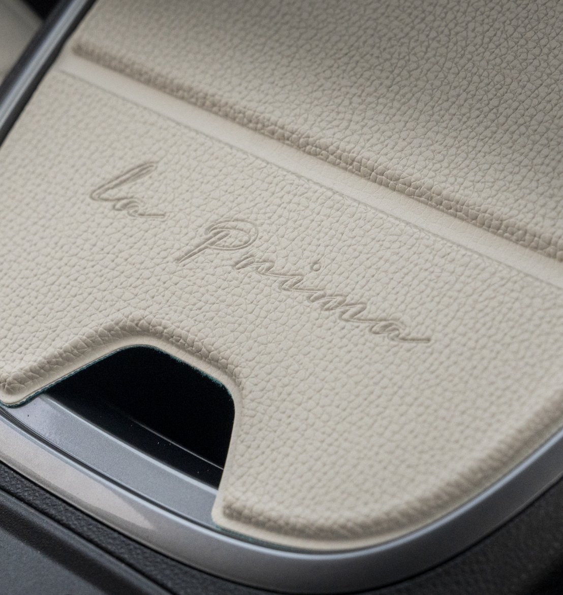 インテリアには、外装の黒のボディカラーと美しいコントラストを描くよう、アイボリーのエコレザーあしらいました。さらに、センターコンソール パッド La Primaを標準装備することで、統一感と高い質感を実現しています。