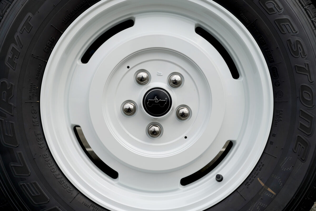 そして最大の特長は、印象の異なる2通りのスタイルを楽しむことができる2-Wayホイールです。ホイールデザインのひとつは、Willys MBのスピリットを受け継ぐコンセプトカー「Willys ’41(ウィリス フォーティーワン)」から着想を得たクラシカルな佇まいです。一方、シルバーの大型キャップを装着すると、力強い存在感を放ちます。いずれのセンターキャップにも、Willys MBのシルエットが刻印されています。
