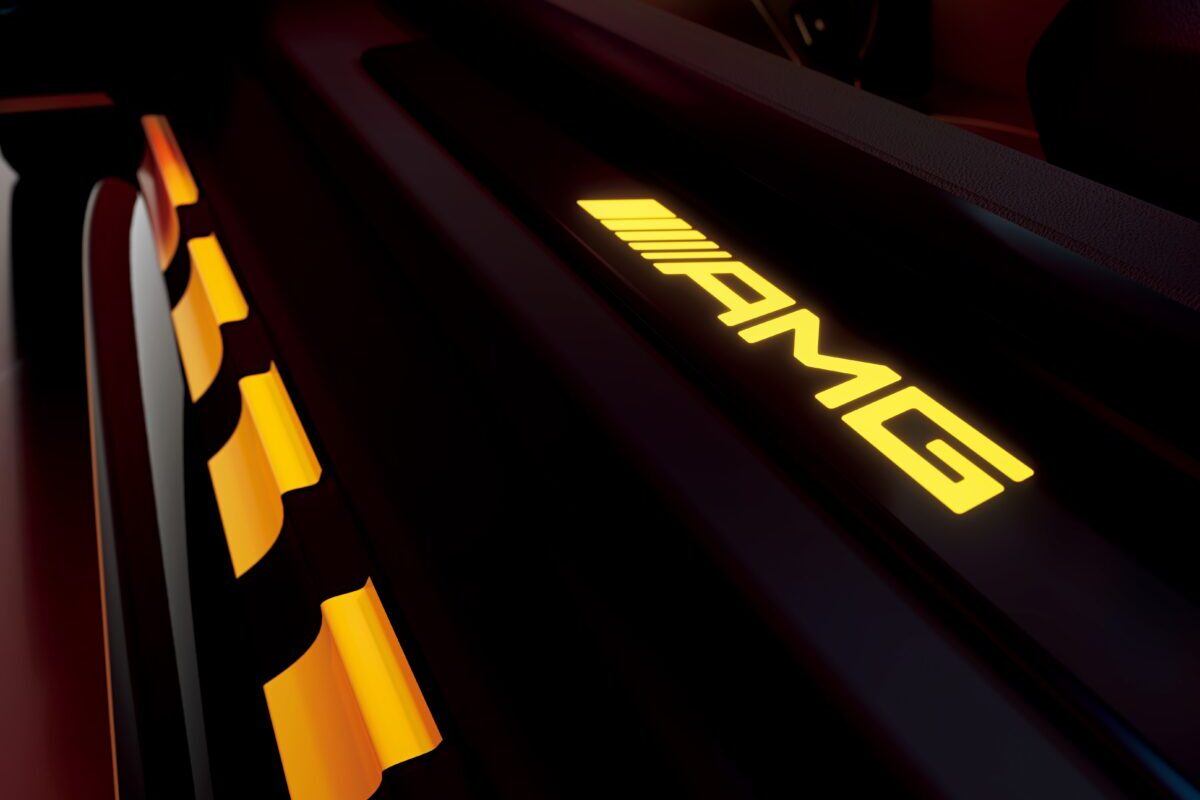 また、「AMG スタイリングパッケージ」を採用し、フロントおよびリアに追加のフリック、リアエプロンにはディフューザーパネルを装着。さらに迫力あるデザインへと進化を遂げています。
