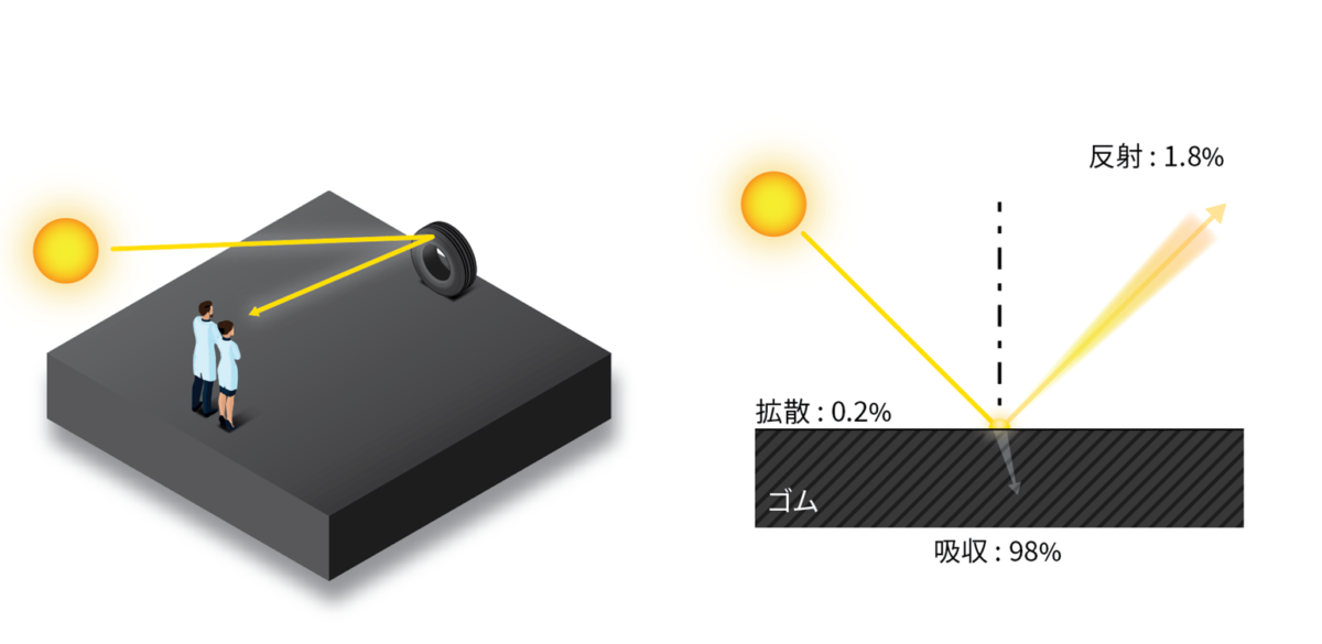 タイヤのサイドウォールデザインは、光がタイヤ表面で反射をし、目に届くことで可視化されます。反射量が多いと白く見え、反射量が少ないと黒く見えます。プレミアムタッチのサイドウォールデザインは0.1ミリ単位まで調整した表面の造形で、反射量を少なくし、タイヤをより黒く、美しく見せているのです。