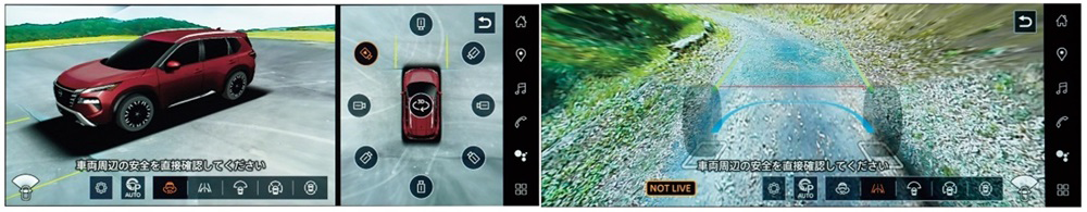 今回のマイナーチェンジでは、「3Dビュー」機能と「インビジブルフードビュー」機能を搭載した「インテリジェント アラウンドビューモニター」を日産として国内販売モデルに初採用しました。「3Dビュー」機能は、クルマの周囲360度を立体的に見ることが可能となり、ドライバーの死角をなくすことで、車両発進時の巻き込み防止など安全確認をサポートします。