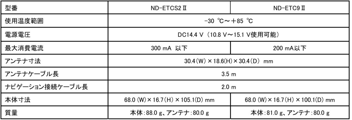 | ETC ユニット | ND-ETC9Ⅱ | オープン価格 |