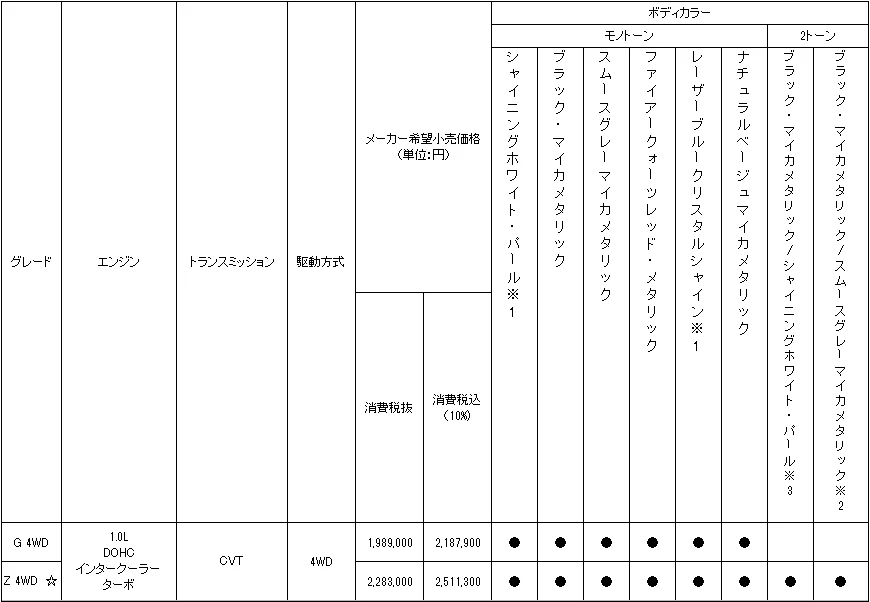 同モデルは、1.0Lターボエンジンと「ダイナミックトルクコントロール4WD」を採用し、燃費性能と走行安定性を両立。日常使いからアウトドアまで幅広いシーンに対応し、パワフルで余裕のある走りが楽しめるモデルとなる。興味のある方は公式サイトもチェックしてみてはいかがだろうか。
