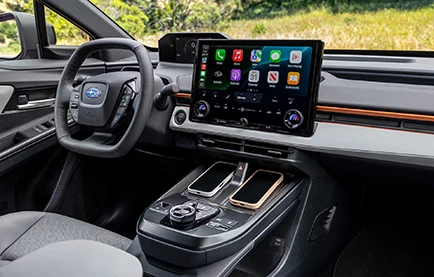 走行性能では、高出力モーター*4を採用することで、バッテリーEVならではの、レスポンスよくトルクを発生させるモーター特性を活かした、リニアで伸びのある加速を提供します。また、SUBARUが培ってきた技術を活かしたサスペンション、電動パワーステアリングのセッティングや、新たなAWD制御の採用により、ドライバーがより意のままに操ることができる走りを実現しました。
