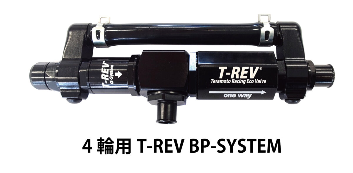 寺本自動車商会が開発した内圧コントロールシステムで2輪用として始まり、4輪用にチューニングされ開発された「T-REVαシステム」をベースに改良を加え、クランクケース内圧のさらなる安定化をさせるために「T-REV BP-SYSTEM」が誕生した。