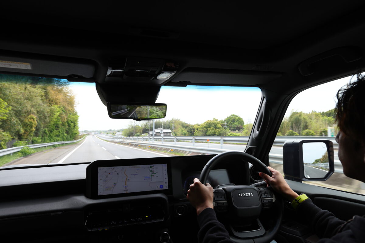 ノーマルでも車高の高いランドクルーザー250を更に2インチアップしているが、不快な横揺れや振動はほとんど感じられない。