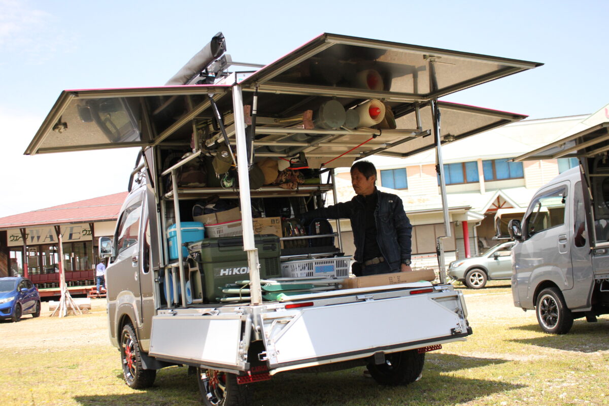 今回の撮影は、軽トラの荷台を自由にカスタマイズしてくれる「Lanps(ランプス)」が主催するキャンプイベント。同社が拠点を構える岐阜県高山市の近く、ひだ舟山スノーリゾートアルコピアで開催され、車中泊仕様、お仕事仕様、災害支援仕様など、さまざまなスタイルの車両が集まりました。