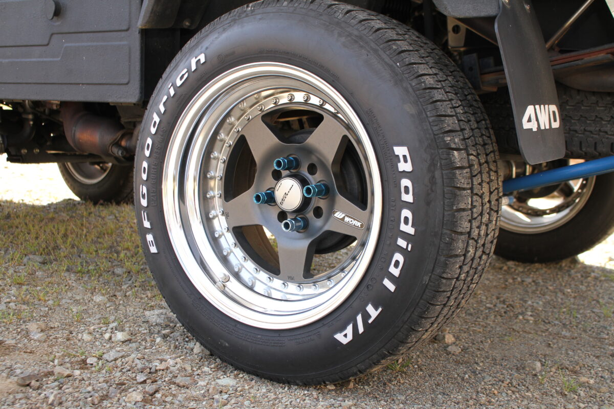「オーバーフェンダー+WORKSのアルミホイール。車高を上げています」