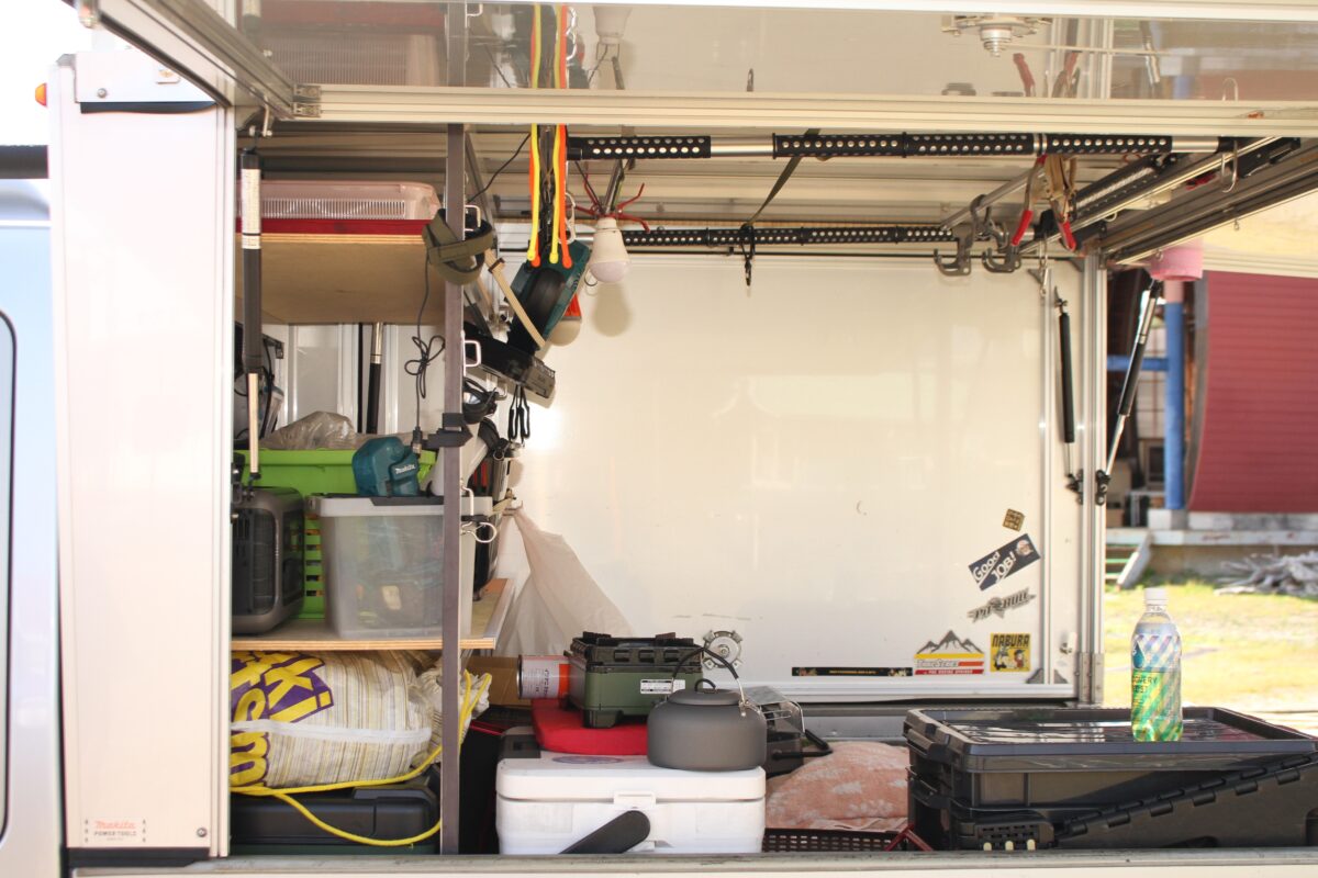 「以前に乗っていた幌付きの軽トラでは、カッターで切られて中の道具や材料を盗まれてしまったんです。もともと幌は防犯性に難がありましたし、雨や風に弱いという弱点もありました。