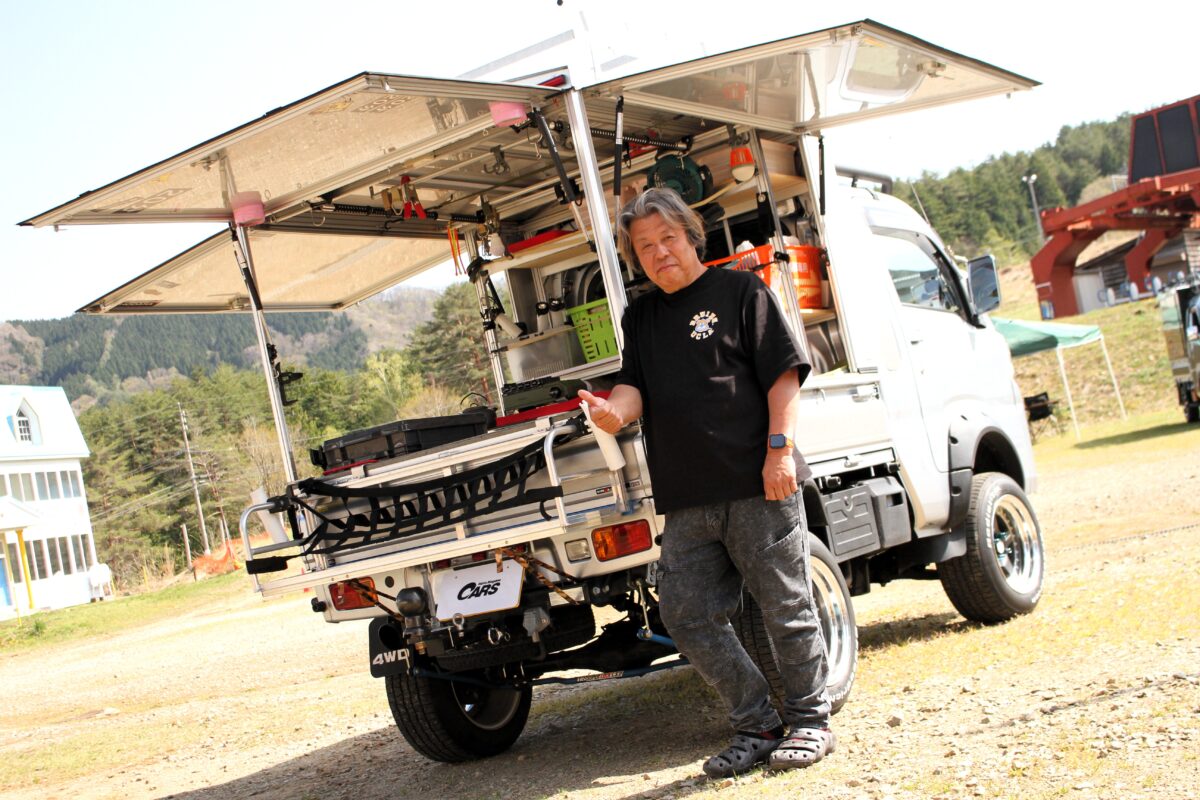 今回の撮影は、軽トラの荷台を自由にカスタマイズしてくれる「Lanps(ランプス)」が主催するキャンプイベント。同社が拠点を構える岐阜県高山市の近く、ひだ舟山スノーリゾートアルコピアで開催され、車中泊仕様、お仕事仕様、災害支援仕様など、さまざまなスタイルの車両が集まりました。