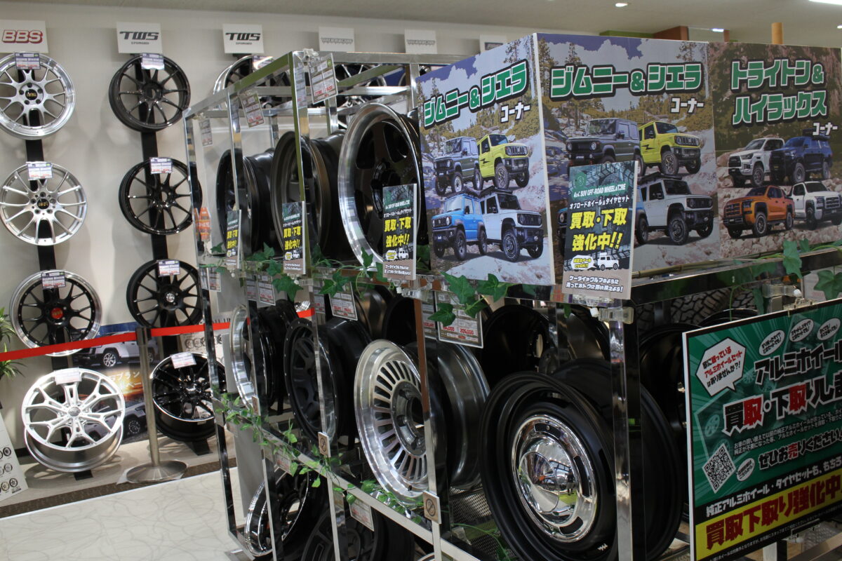 店内にはアルファード/ヴェルファイア、ランドクルーザー、ジムニーなど人気車種の専用コーナーを設けており、そのパーツの豊富さは一見の価値あり。