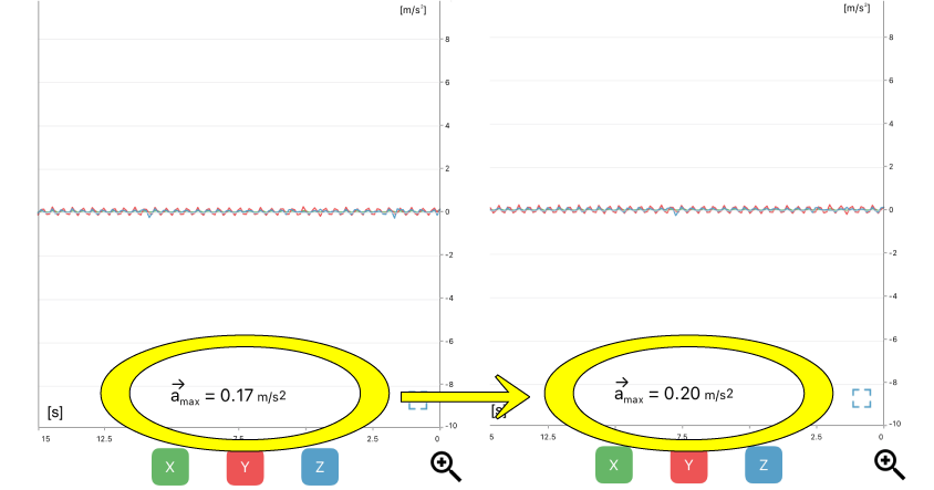 なんと今回に限り、アイドリング時の音は大きく、振動は増える測定結果になった。
