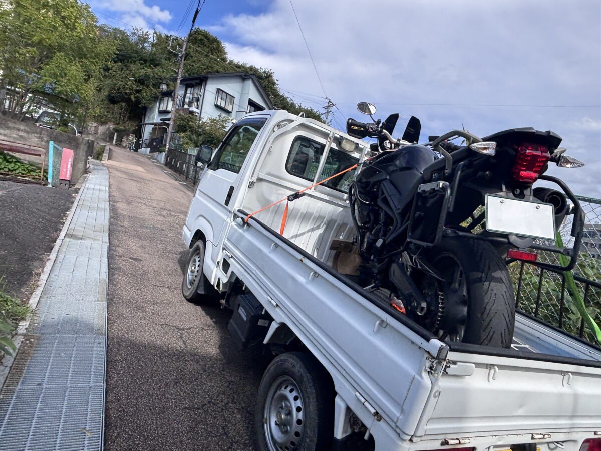 我が家で最重量(200㎏)を誇る大型バイクを積載して急な上り坂でテストをしてみた。もともとアクティトラックは登坂性能を追求した低速トルク型エンジン+超が付くほどのローギヤミッションなので「お? エンジンが力強くなったかな?」レベルの曖昧な印象だったが、1点だけ大きく変わった。