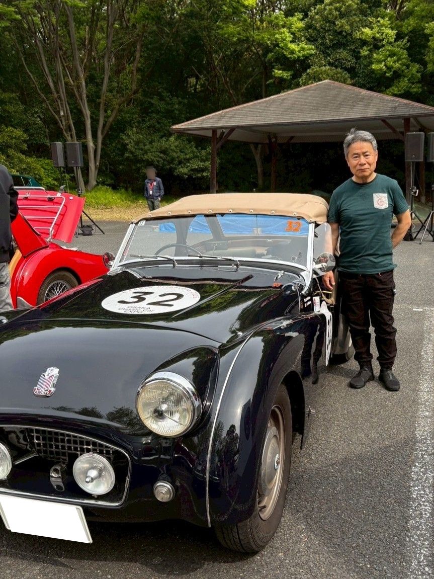 1954年式のトライアンフTR2で「ラフェスタプリマヴェーラ」に参加。長距離・高負荷走行に耐えるため、エンジン保護に配慮し、スーパーゾイルを使用。エンジンの安定性や静粛性が向上したと感じている。