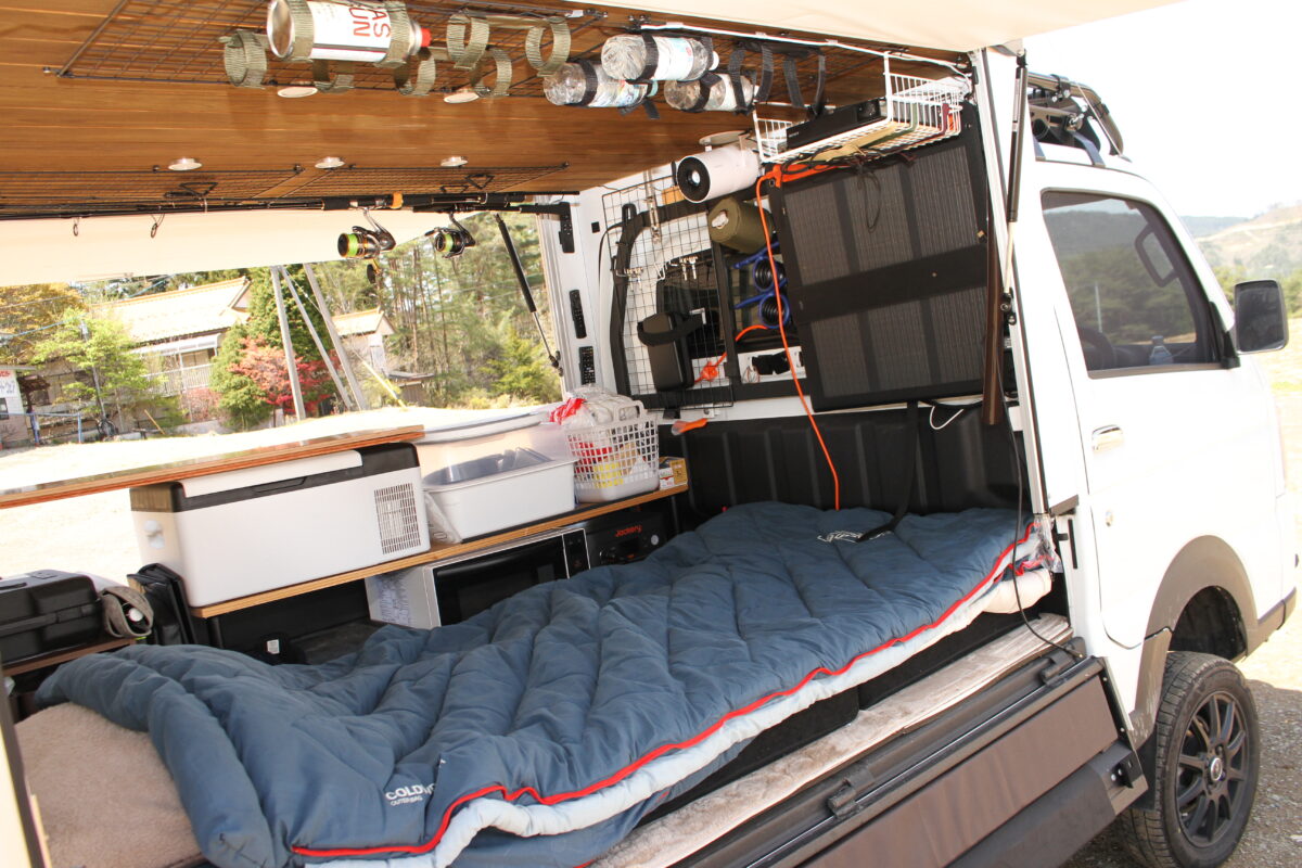 決め手は、荷台の床を完全フラットにできて寝やすいところと、カスタムの自由度が高いところ。