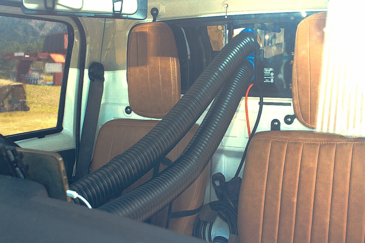 「運転席のエアコンにダクトをつないでカーゴボックス内まで通し、室温調整できるようにしています」