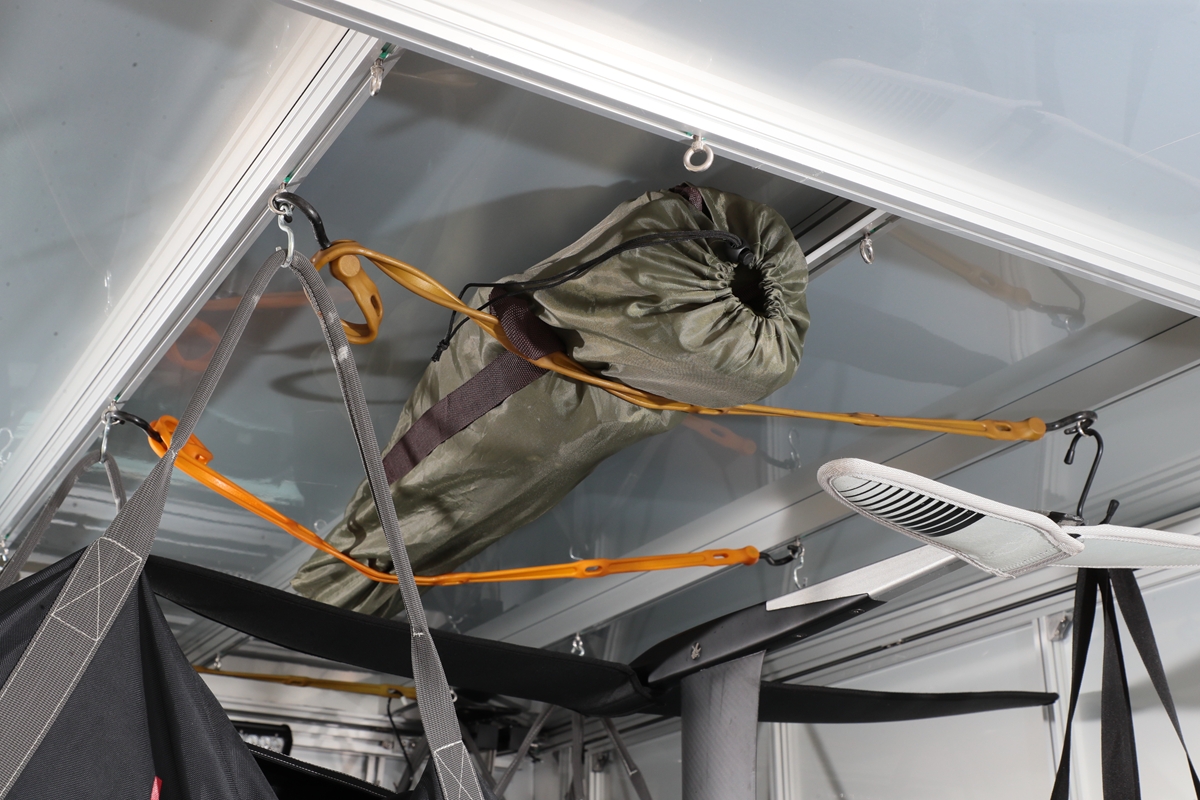 天井も有効利用してマリンスポーツのギアを収納