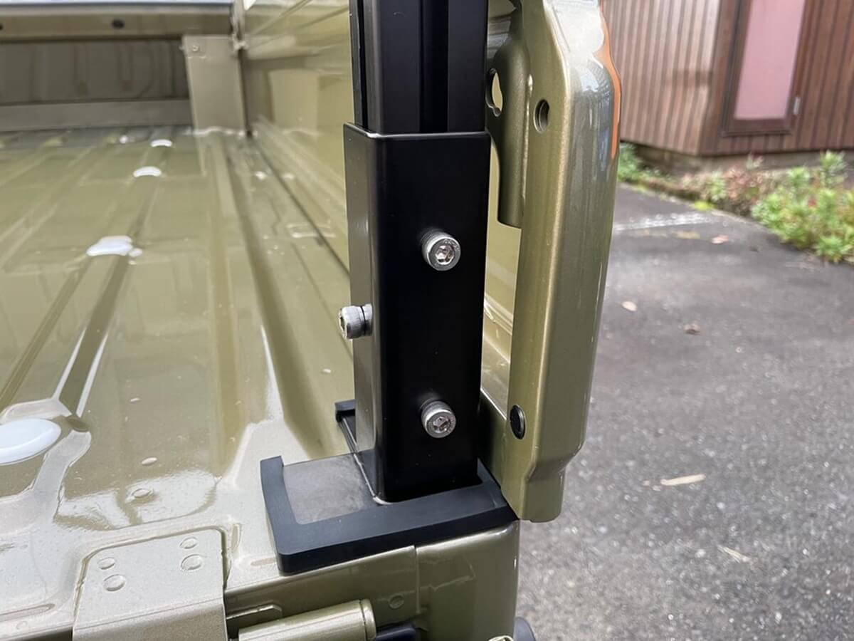 トラレールの土台部分は軽トラの「アオリ」部分に挟み込める形状になっている。