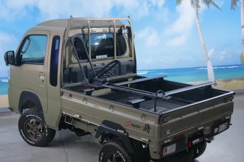 但東自動車はトラレールのほかに「SAMURAI PICK UP」ブランドも展開している。これは、リフトアップやアルミホイール、エアロパーツやバンパーを装着することで軽トラの印象をガラリと変えるカスタムブランドだ。