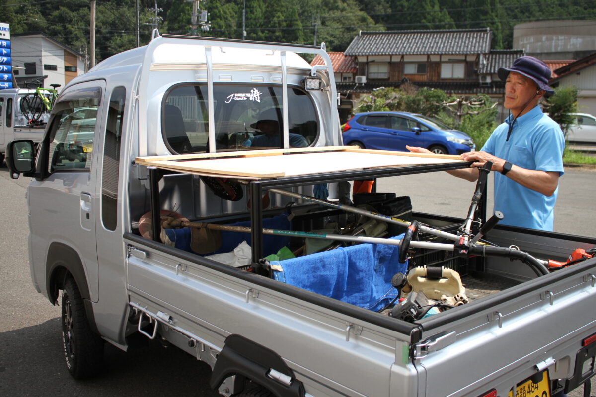 たとえば草刈り機はデリケートなチップソーをどこにもぶつけずに積載できるし、脚立(きゃたつ)はキャビンに水平に安定させることができる。また、高さを稼げるため、荷台スペースをより有効に使えることも仕事ユーザーが重宝するポイントだ。