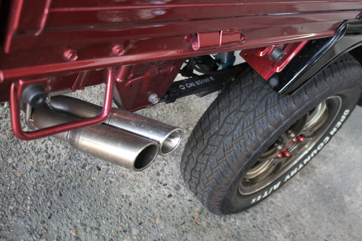 同店は軽トラ専門店として膨大な知識と経験を持っているため、足まわりはもちろん、エンジンの仕様変更も可能。タービンの追加やそれに伴うリセッティング、車検対応マフラーの換装にも応じてくれる。
