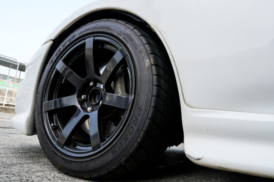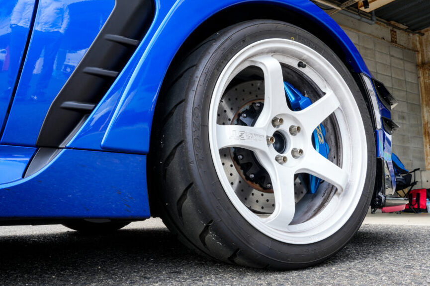 「R888Rはしっかりとグリップしてくれるタイヤですね。前後ともR888Rに統一する予定でしたが、間に合わずリアにはR888Rのドリフトを装着しています」